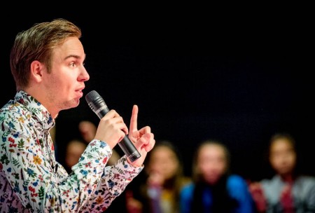 AMSTERDAM - Dylan Haegens genoot met volle teugen van de stemopnames van de nieuwe animatiefilm over Asterix en Obelix. De YouTuber, die zijn stem leende aan de betweterige druïde Teleferix, stak stiekem ook veel op van het klusje. “Ik leer hier heel veel van, dat vind ik altijd leuk”, zegt Dylan voor de camera van het ANP.