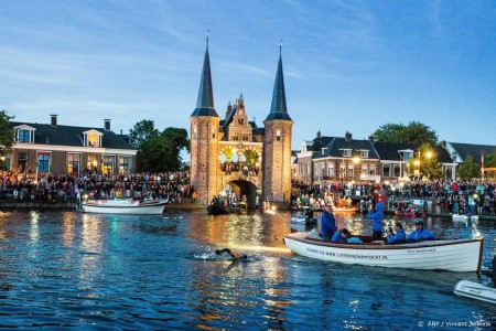 In Sneek zelf stonden de mensen rijendik de olympisch kampioen op de 10 kilometer van Peking (2008) aan te moedigen. Na zijn stempel zwom Van der Weijden door naar de Waterpoort om daar zijn weg te vervolgen naar IJlst, voor stempel nummer twee.