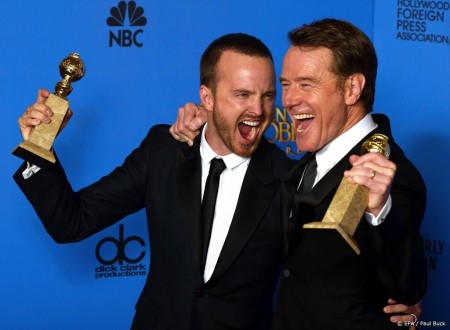 LOS ANGELES - De geruchten over een Breaking Bad-film worden alsmaar sterker, en Bryan Cranston en Aaron Paul besloten dinsdag nog wat olie op het vuur te gooien.