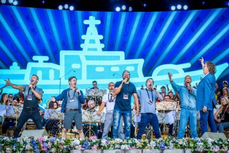 Rieu stond tijdens de generale repetitie niet alleen op het podium. Hij werd vergezeld door de Amerikaanse discogroep Village People. De band, vooral bekend van de monsterhit Y.M.C.A. voegt zich donderdag eenmalig bij de violist op het Maastrichtse plein.