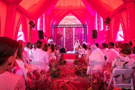 Fotograaf Erwin Olaf was ook bij de ceremonie aanwezig, om te spreken over liefde en diversiteit. Het gelukkig getrouwde stel wordt nu volledig in de watten gelegd door de organisatie van het festival, en worden voor hun eerste huwelijksnacht ondergebracht in een hotel.